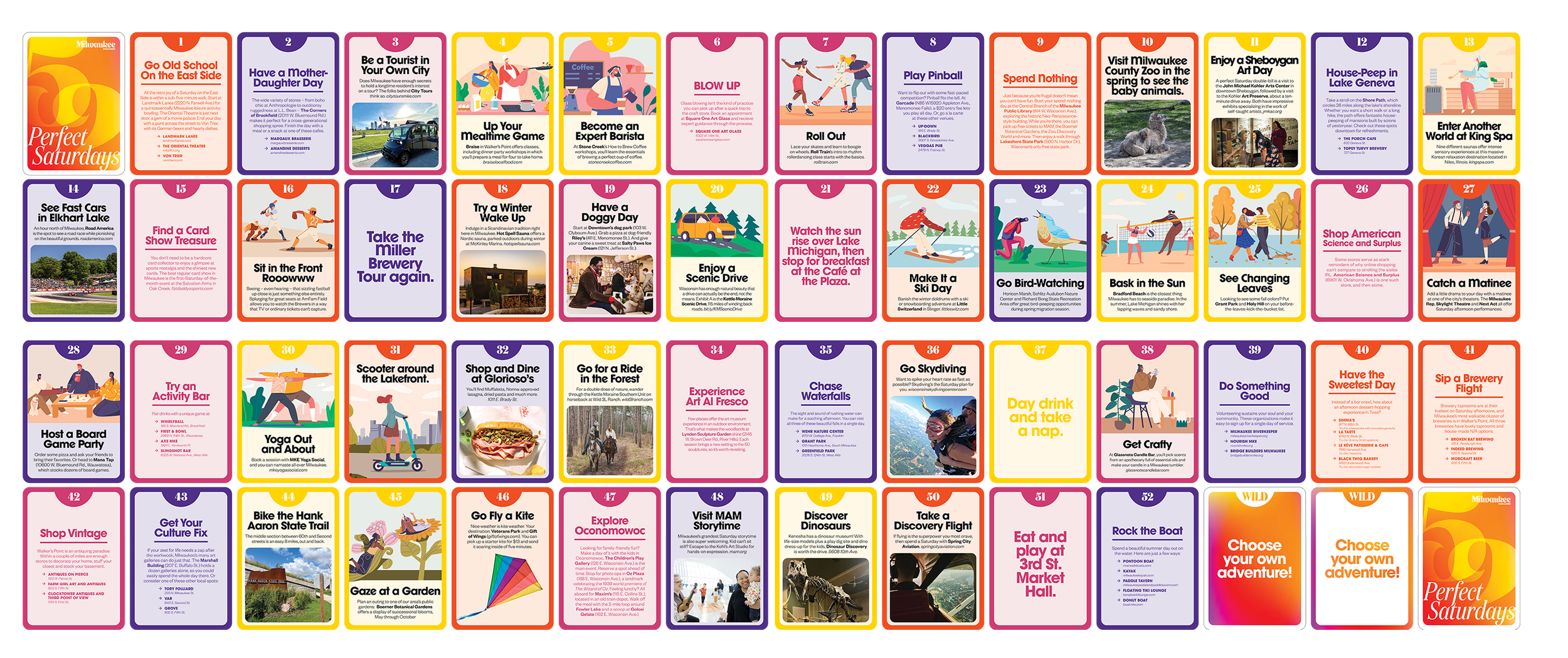 Milwaukee Magazine’s 2026 January Cover feature was “52 perfect saturdays in milwaukee”. While the art department brainstormed cover ideas, I came up with the idea of basing the design off of a deck of cards.